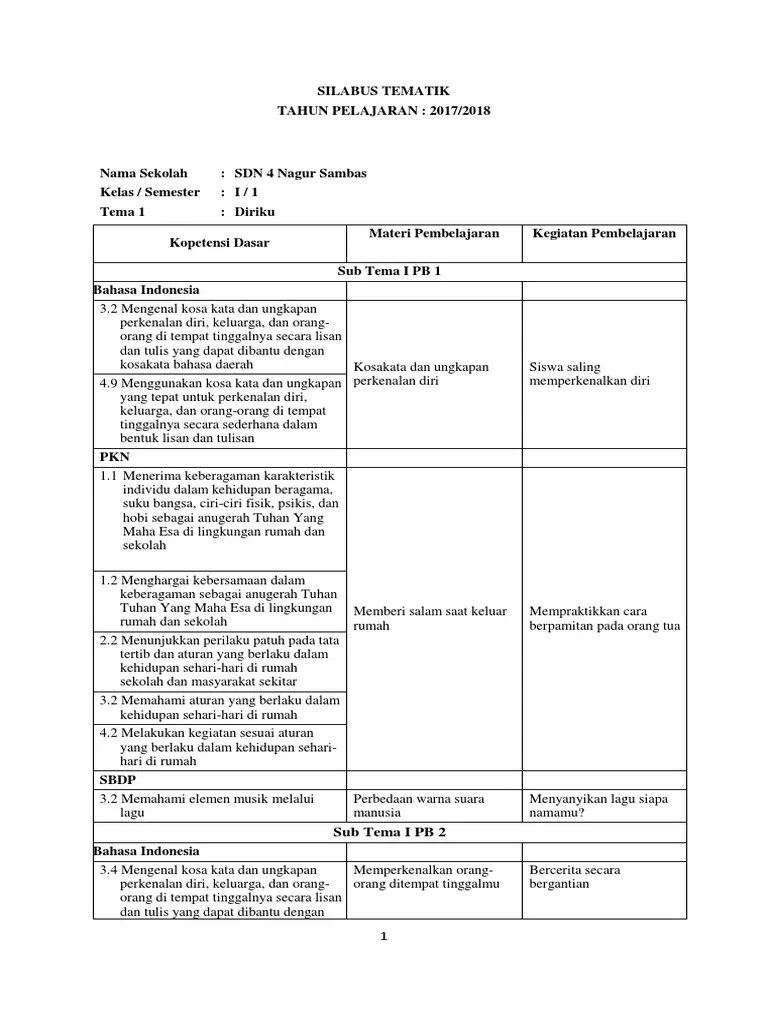 1 silabus pembelajaran kelas 1 semester 1 tematik tema 2 kegemaranku sub tema1 pembelajaran 3 oleh: Silabus tematik kelas i merupakan rencana pembelajaran pada suatu kelompok mata pelajaran dengan tema tertentu, yang mencakup standar . Silabus terbaru kelas 1,2,3,4,5,6 sd semester 1 & 2 revisi 2021/2022. Rpp dan silabus kurikulum 2013 sd . Demikia share silabus dan rpp untuk sd/mi kelas 1, 2, 3, 4, 5, dan 6 semester 1 dan 2 pada kurikulum ktsp 2006 lengkap.