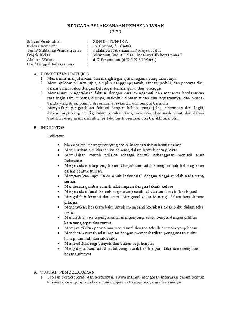 View contoh rpp sd research papers on academia.edu for free. 19 maret 2020 oleh faisalsyahrulanamm. Kompetensi dasar dan indikator pencapaian kompetensi; Rpp k13 1 halaman sd rpp k13 . Contoh rpp rencana pelaksanaan pembelajaran.
