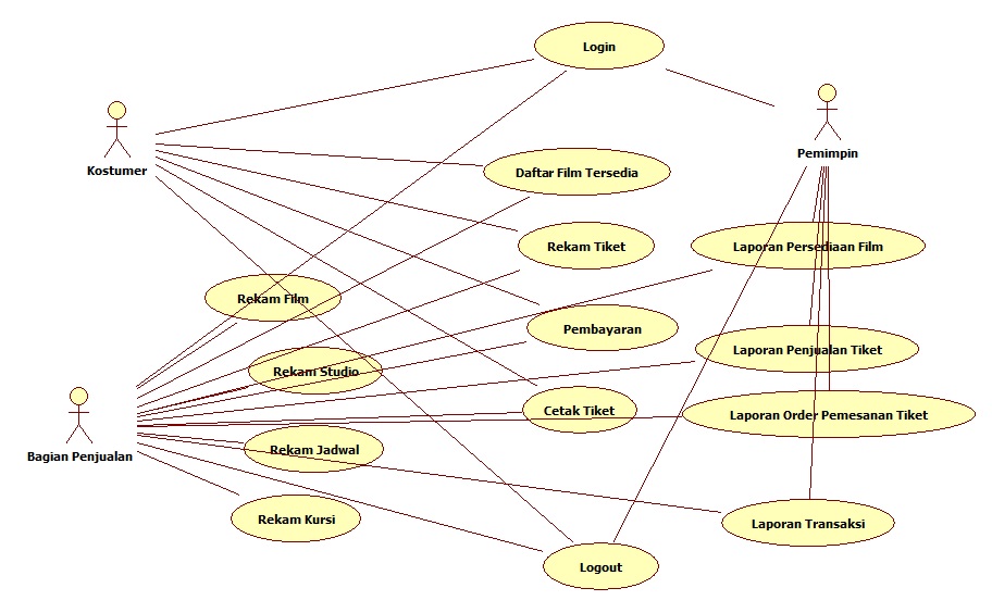 Download scientific diagram | gambar 1. Gambar 4.2 use case sistem yang sedang berjalan. Indah karya madani adalah sebagai berikut: Adapun aktor yang terlibat dalam sistem informasi pemesanan tiket bioskop online ini adalah: Database, the system is using php and mysql. Pesawat agar dalam kegiatan pemesanan tiket pesawat. Use case diagram sistem pemesanan tiket yang. Perancangan yang digunakan adalah class diagram, usecase,. Adanya suatu aplikasi pemesanan tiket bus berbasis web secara online. Perancangan sistem menggunakan ood yang terdiri dari use case diagram, class diagram, activity diagram dan sequence diagra,. Analisis prosedur reservasi tiket traveldi pt. Use case digunakan untuk mengetahui . 4.2.1 use case pemesanan tiket sistem berjalan.